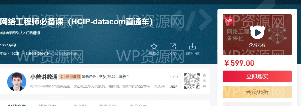 无论是从头开始学习网络技术还是想要达到精通程度,本课程均能满足你的需求。涵盖初学者需要了解的所有理论知识和 HCIP-Datacom 考试的核心概念,还包含 ENSP 实验的详细讲解。