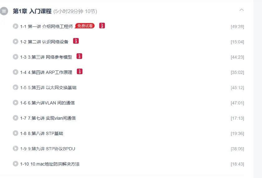 以上是【网络工程师必备课程】的简要介绍和结构概览。本课程为对网络技术感兴趣或希望深入发展此领域的专业人士设计,以确保他们在理论知识和技术能力上全面掌握,并且能够应对未来工作中的各种挑战。